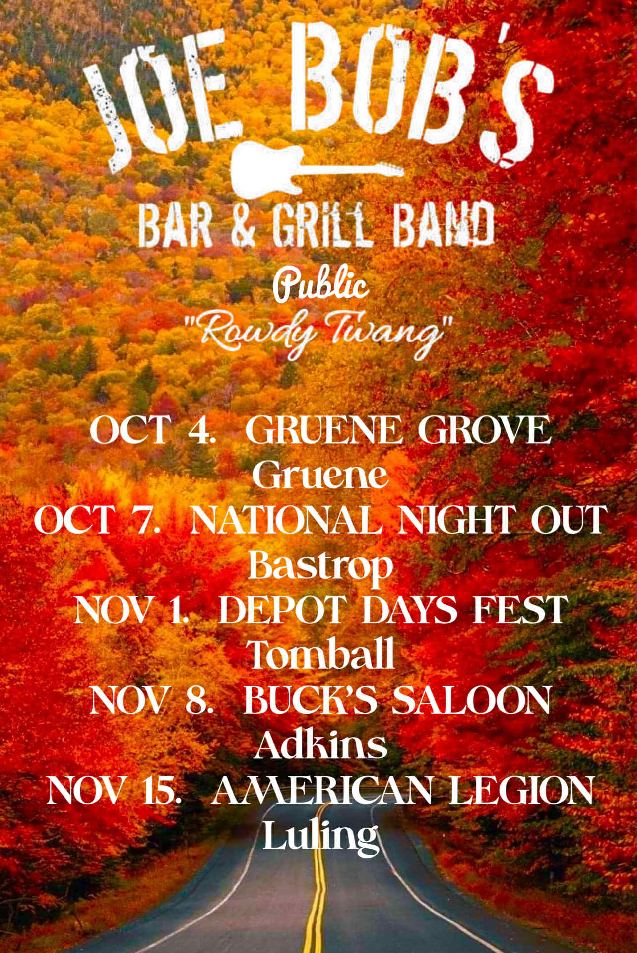 Joe Bob’s Bar & Grill Band is well known by country music lovers all over the state of Texas and beyond, performing what we refer to as “Rowdy Twang”.